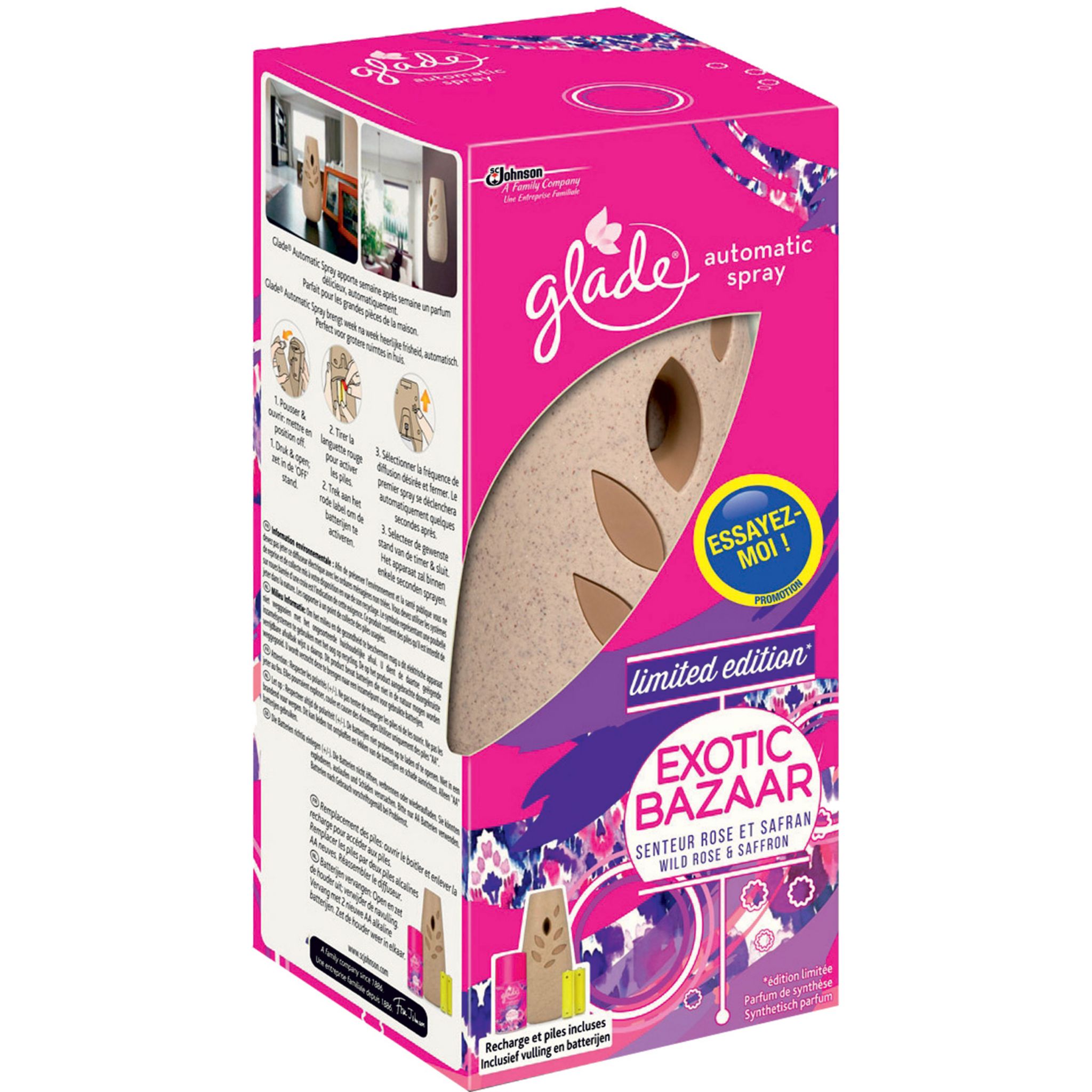 GLADE AUTOMATIC SPRAY DIFFUSEUR EXOTIC BAZAR 'ESSAYEZ-MOI !' La formule unique de Glade emplit rapidement la pièce de fraîcheur et d’une variété de senteurs incroyables.