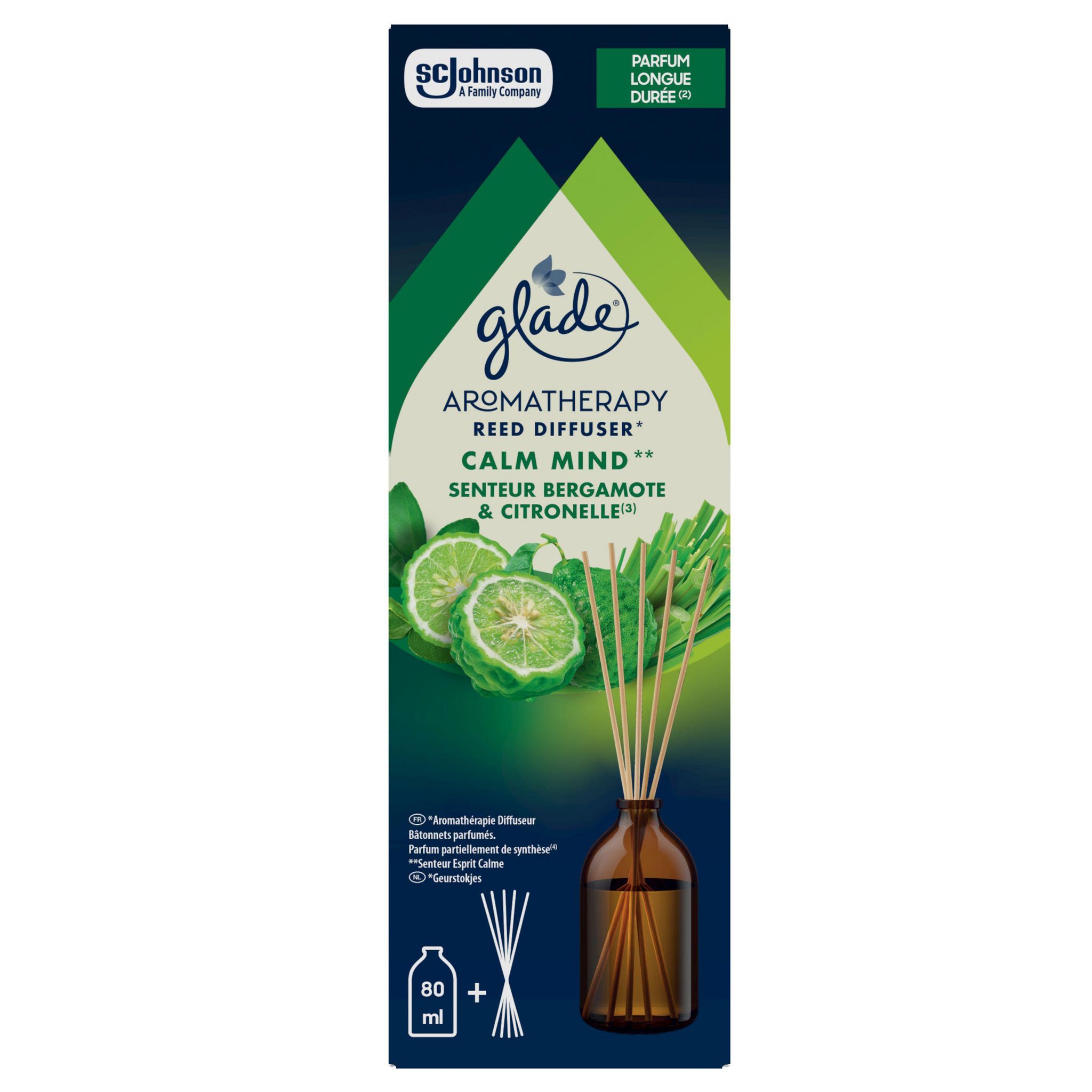 Diffuseur Glade® Aromatherapy Bâtonnets, Calm MindTM à la bergamote et à la citronnelle, 80 ml