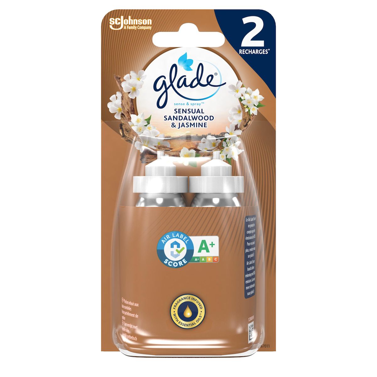 Recharges Diffuseur Sense & Spray™ Bois de Santal & Jasmin Glade® - aux huiles essentielles, 2 x 18 ml