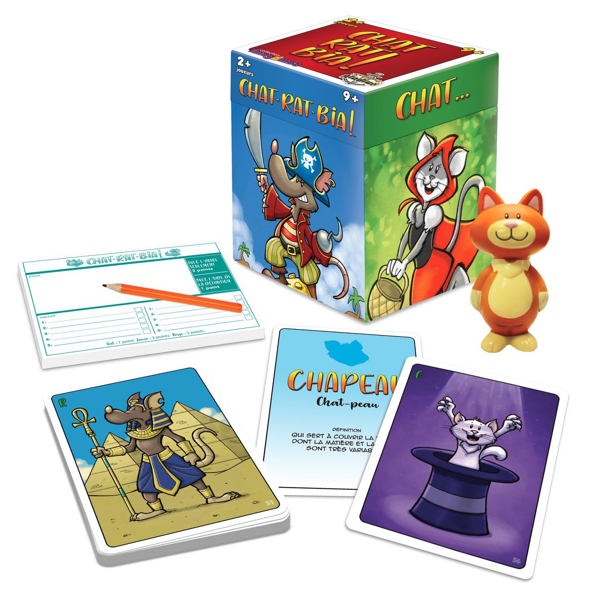 Concentrez-vous sur les cartes illustrées et soyez le premier à saisir le chat en caoutchouc pour proposer un mot incluant les sons "Chat" ou "Rat". Accumulez les points pour remporter la victoire dans cette compétition de rapidité et d'observation !