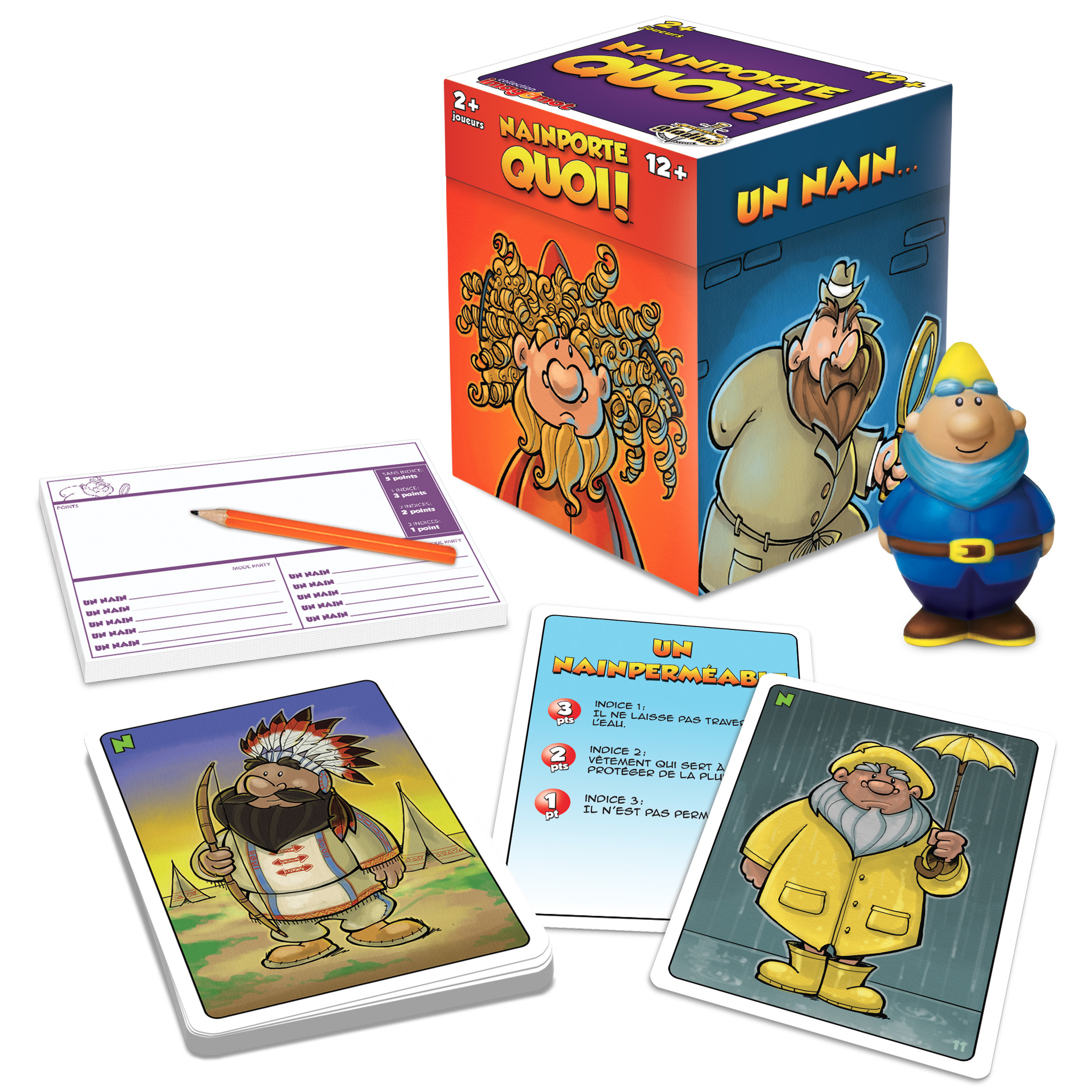 Concentrez-vous sur les illustrations et soyez le premier à saisir le nain en caoutchouc pour proposer un mot commençant par "nain". Si la réponse vous échappe, un "naindice" vous sera offert. Accumulez les points pour être couronné vainqueur de cette partie pleine de rires et de surprises !