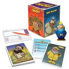 Testez votre esprit de déduction avec ce jeu de devinettes loufoques! Observez bien les illustrations et soyez le premier joueur à vous emparer du nain de caoutchouc pour donner le mot qui débute par UN NAIN... Le joueur ou l’équipe qui termine avec le