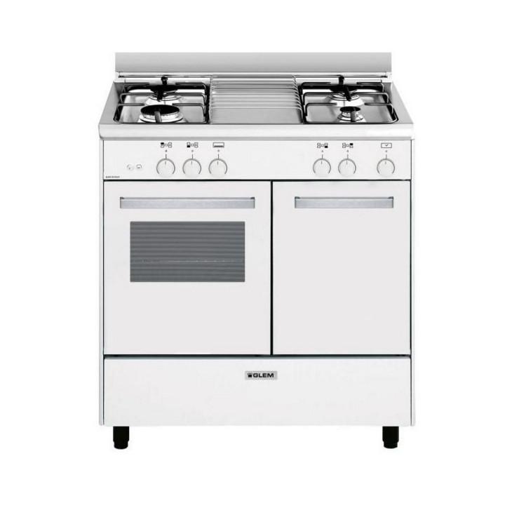 Glem GA85PMWH Cuisinière Butanette GLEM GA 85 PMWH.Four gaz.2 modes de cuisson.Cavité émail lisse Titanium: la faible porosité de l'émail en facilite le.Minuteur sonore 60min.Contre-porte plein verre.Porte 2 vitres avec vitre intérieure démontable.Ventilateur tangentiel aspiré: l'air chaud du four e
