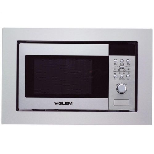 Glem GMI203IX-1 Micro-ondes gril encastrable meuble haut Glem GMI203IX doté de 8 programmes automatiques en fonction du type d'aliment et de son poids avec Fonction Décongélation poids/temps. - Type de produit : Micro-ondes gril encastrable.Capacité : 20 L.Puissance Micro-ondes : 900 Watts.Niveaux d
