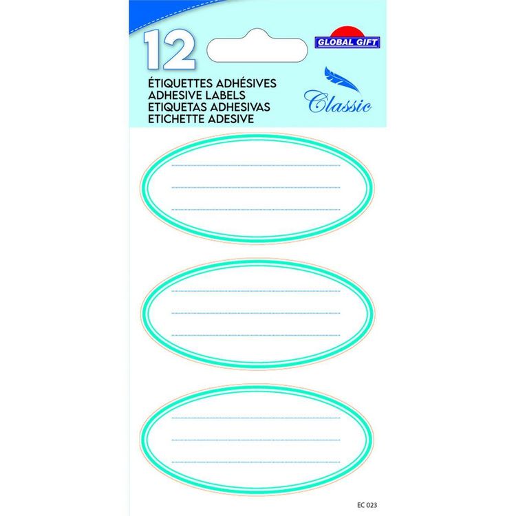 Les étiquettes adhésives de Global Gift en forme d'ovales bleues sont idéales pour ajouter une touche de couleur et d'originalité aux fournitures scolaires et aux paquets cadeaux. Ce paquet d'étiquettes fantaisies contient 4 feuilles de 3 étiquettes, soit 12 au total. Les étiquettes autocollantes ont aussi de multi-usages et sont personnalisables. Leur adhésion est résistante et se collent facilement où vous le souhaitez comme un alteur, un cahier, un livre, une chemise plastique ou encore un emballage cadeau. Le design des étiquettes est unique et créé en France. La rentrée des altes sera super ! Les 12 autocollants sont disposés sur 4 pages de 12 x 8 cm.