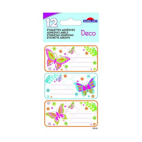 En savoir +Les étiquettes adhésives de Global Gift en forme de rectangles sur le thème des papillons sont idéales pour ajouter une touche de couleur et d'originalité aux fournitures scolaires et aux paquets cadeaux. Ce paquet d'étiquettes fantaisies contient 4 feuilles de 3 étiquettes, soit 12 au total. Les étiquettes autocollantes ont aussi de multi-usages et sont personnalisables. Leur adhésion est résistante et se collent facilement où vous le souhaitez comme un alteur, un cahier, un livre, une chemise plastique ou encore un emballage cadeau. Le design des étiquettes est unique et créé en France. La rentrée des altes sera super ! Les 12 autocollants sont disposés sur 4 pages de 12 x 8 cm.