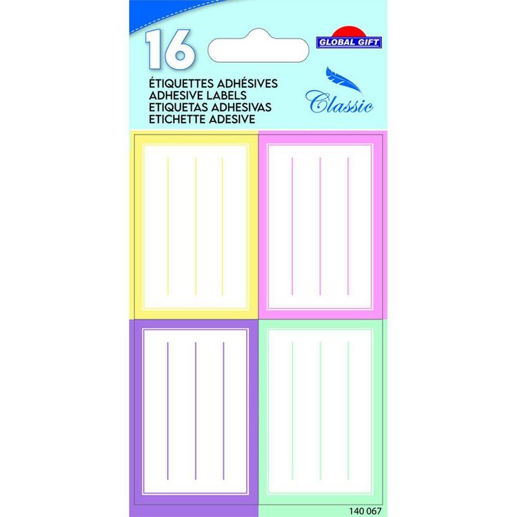 16 étiquettes adhésives scolaires - Rectangles - Pastel