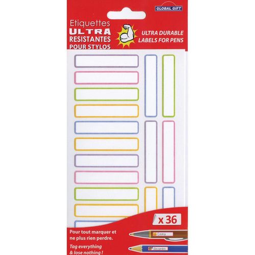 Les étiquettes extra-résistantes se collent partout et permettent de tout identifier : les cahiers, les livres scolaires, les bagages, les lunettes et biberons, et bien d'autres supports lisses.