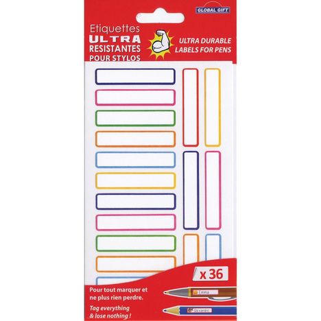 Les étiquettes extra-résistantes se collent partout et permettent de tout identifier : les cahiers, les livres scolaires, les bagages, les lunettes et biberons, et bien d'autres supports lisses.