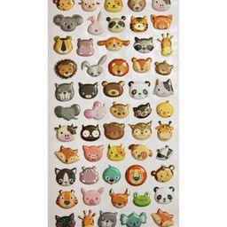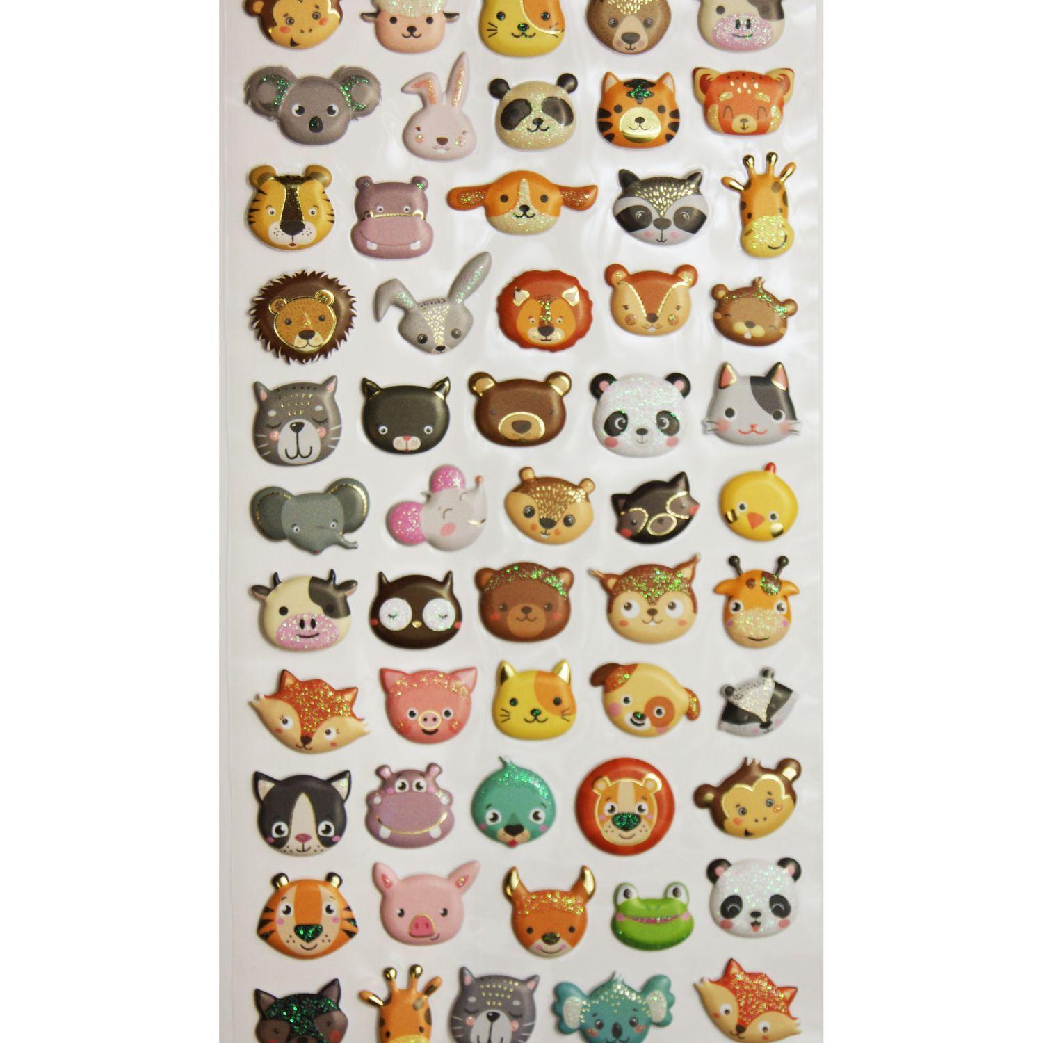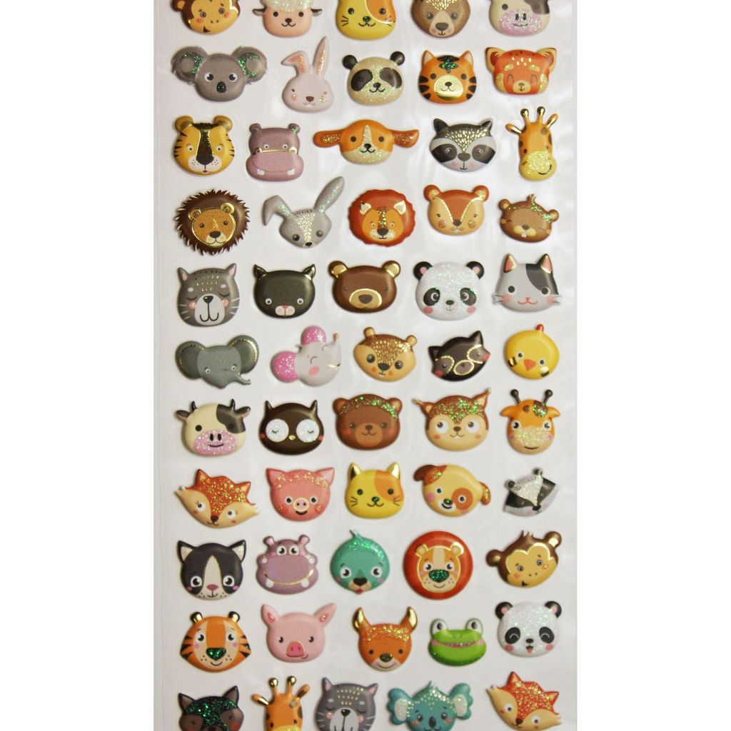 Autocollants réutilisables - Relief 3D - Visages animaux - Paillettes