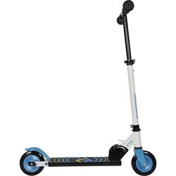 Les caractéristiques techniques de ce scooter incluent des roues de 121 mm, un guidon réglable en hauteur, et un système de freinage sur la roue arrière. Ces éléments garantissent une expérience de conduite sécurisée et agréable pour les utilisateurs.