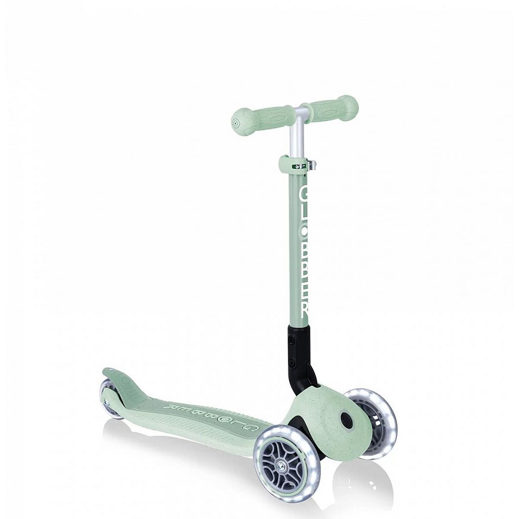 Un monde plus vert sur roues : JUNIOR FOLDABLE LIGHTS ECOLOGIC aide les familles du monde entier à vivre et à respirer les valeurs et les choix écologiques. Il est composé à 60 % de plastique Global Recycled Standard et de paille de blé biodégradable*. Un scooter écologique à 3 roues pour les tout-petits avec des systèmes brevetés de verrouillage et de pliage de la direction et une barre en T réglable pour les enfants dès l'âge de deux ans, JUNIOR FOLDABLE LIGHTS ECOLOGIC a la même intégrité structurelle que l'original emblématique mais utilise plus de matériaux écologiques pour moins d'impact sur l'environnement . Conçues pour le plaisir, les JUNIOR FOLDABLE LIGHTS ECOLOGIC sont également livrées avec des roues lumineuses sans pile qui fonctionnent grâce à l'énergie cinétique renouvelable de votre enfant. Plus elles vont vite, plus elles brillent !. Profitez de moments en famille et de balades respectueuses de la planète !. JUNIOR FOLDABLE LIGHTS ECOLOGIC est composé à 60% de plastique GRS et de paille de blé biodégradable*. GRS est un protocole international qui vérifie le contenu recyclé dans les produits finaux. L'utilisation du plastique GRS permet d'économiser des tonnes de déchets provenant des décharges et d'atténuer l'impact environnemental de la fabrication. La paille de blé est un bioplastique 100% renouvelable. L'utilisation de paille de blé détourne du flux de déchets, est biodégradable et aide les autres plastiques à se décomposer. Choisissez Globber. Choisissez plus vert !. *Dans les composants applicables