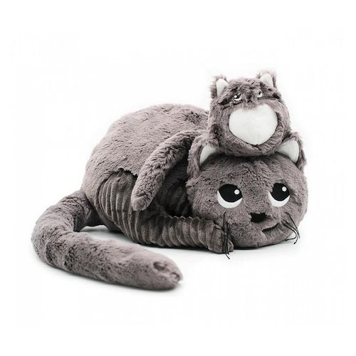 Moi c'est Miaou le chat, je mène une vie de pacha. Avec mon pelage tout doux je te ferai des câlinous. J'adore faire le beau et j'aime boire du thé?on me surnomme le chat-beau-thé. Maman maline?je cache dans mon bidou une mini boule de poils féline. La peluche chat Ptipotos couleur grise est vendue avec son bébé caché dans son ventre. Dimensions : 32 x 21 x 15 cmPetit + : rembourrage en polyester recyclé