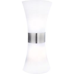 Cette applique d'extérieur sera idéale pour vos soirées d'été, ou bien éclairer votre entrée.FICHE TECHNIQUE- Luminaire en inox et plastique opal.- Couleur : Blanc- Utilisation en extérieur adaptéeCARACTERISTIQUES TECHNIQUES- Dimensions : - Poids : 0,52 kg- Culot de l'ampoule : 2 x E27.- Puissance m