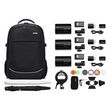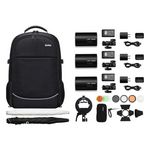 Le kit est livré avec un sac à dos CB20 pour transporter tous les accessoires et flashs, ainsi qu'un support S2 pour montage sur un système Bowens, des parapluies argentés et transparents, et un kit d'accessoires AK-R1. Ces éléments permettent une grande variété de configurations de lumière pour répondre à divers besoins photographiques, qu'il s'agisse de portraits, de mode ou d'événements.