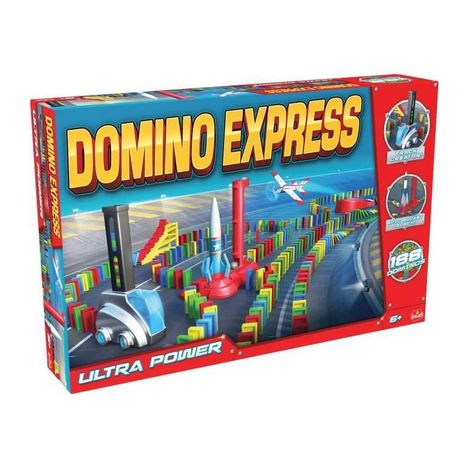 Découvrez le Domino Express Ultra Power de GOLIATH, le coffret ultime pour créer des circuits impressionnants. Grâce au Super Dealer, déposez vos dominos automatiquement et réalisez des constructions extraordinaires. Idéal des 6 ans pour un joueur ou plus.