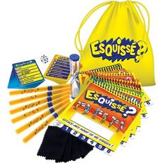 Le jeu Esquisse Voyage est livré avec un ensemble complet d'accessoires : six livrets, un sablier, un dé, six stylos effaçables, 100 cartes, six petits chiffons, et un sac de transport pour faciliter les déplacements. Cela permet aux joueurs de se divertir en toute liberté, où qu'ils soient.