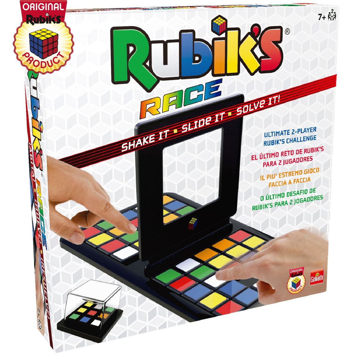 Le principe du jeu Rubik's Race est simple : fais glisser les carrés de couleur afin de recréer, au centre du plateau, le bon motif composé de 3X3 cases et rabats le clapet avant ton adversaire ! Dans ce jeu de réflexion, inspiré du taquin, ton cerveau doit répondre au doigt et à l’œil.