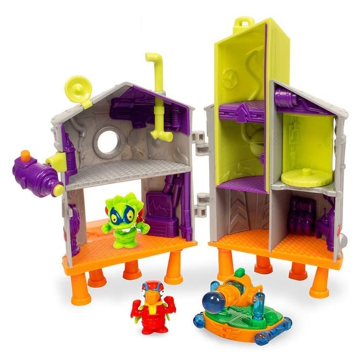 Le labo a aussi un impressionnant canon silo pour tenir les supers méchants à distance, surtout le Dr Chomper ! Dans ce mystérieux laboratoire, un ascenseur peut transporter les SuperZings jusqu’au toit. Il existe même une sortie secrète à utiliser en cas d’urgence.