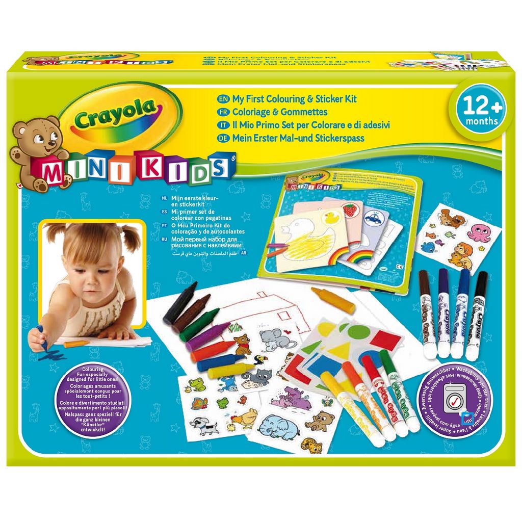Ce kit complet Crayola Mini Kids est spécialement conçu pour l'éveil des tout-petits, il leur permet de s’adonner aux joies du coloriage et des gommettes !