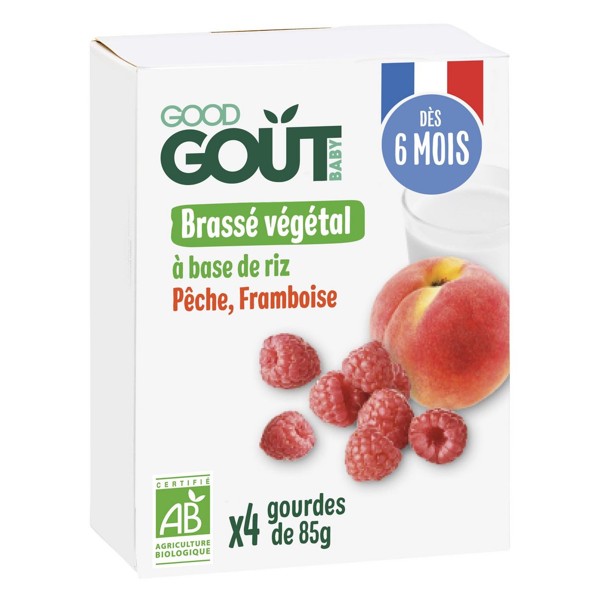 Gourde brassé végétal à base de riz pêche et framboise bio dès 6 mois