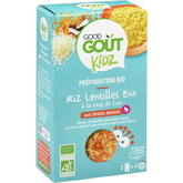 Préparation biologique prête à cuisiner Une délicieuse recette de plat végétarien pour les enfants ! Good Goût Kidz apporte de la variété aux repas de vos enfants avec des recettes à base de céréales, de légumineuses, de légumes et d’épices douces : gourmandes, avec des listes d’ingrédients courtes, sans ingrédients bizarres, faciles et rapides à préparer, et bien sûr 100% bio !