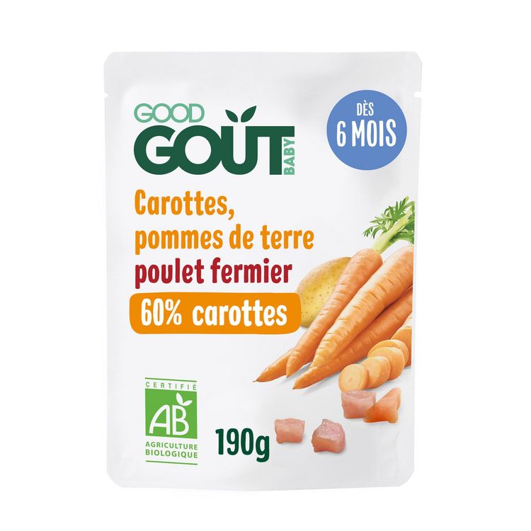 Carottes, Pomme de terre, poulet fermier bio 190g