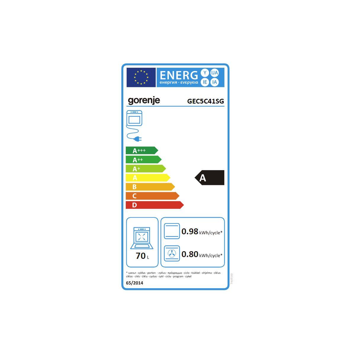 Type de table : vitrocéramique Type-de-commande : Non concerné Valeurs du label énergie : Label énergie A, Consommation en convection naturelle 0,98 kW, Consommation en chaleur tournante 0,8 kW Volume du four principal en litre (présent sur le Label En...