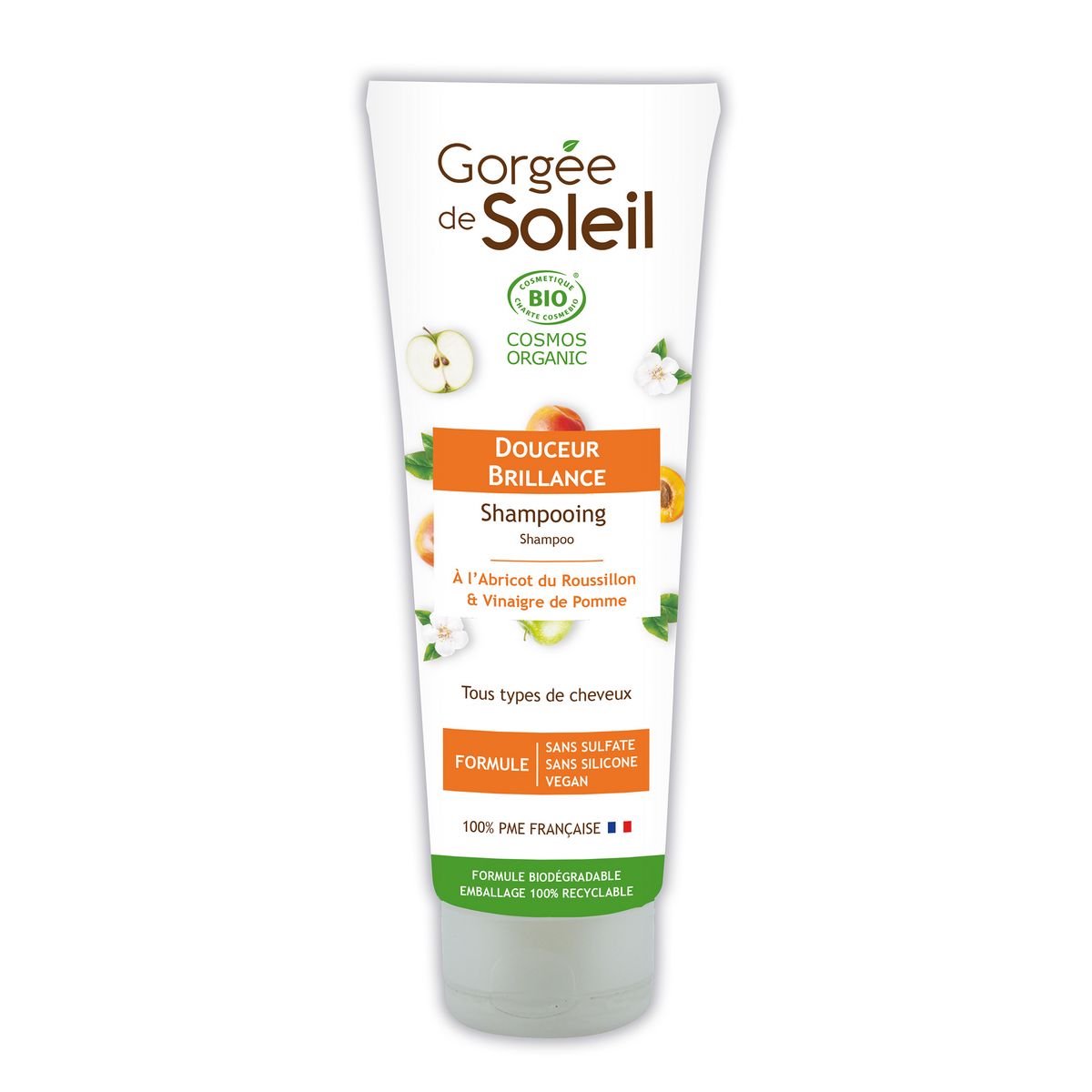 Shampooing douceur brillance bio à l'abricot du Roussillon et vinaigre de Pomme tous types de cheveux