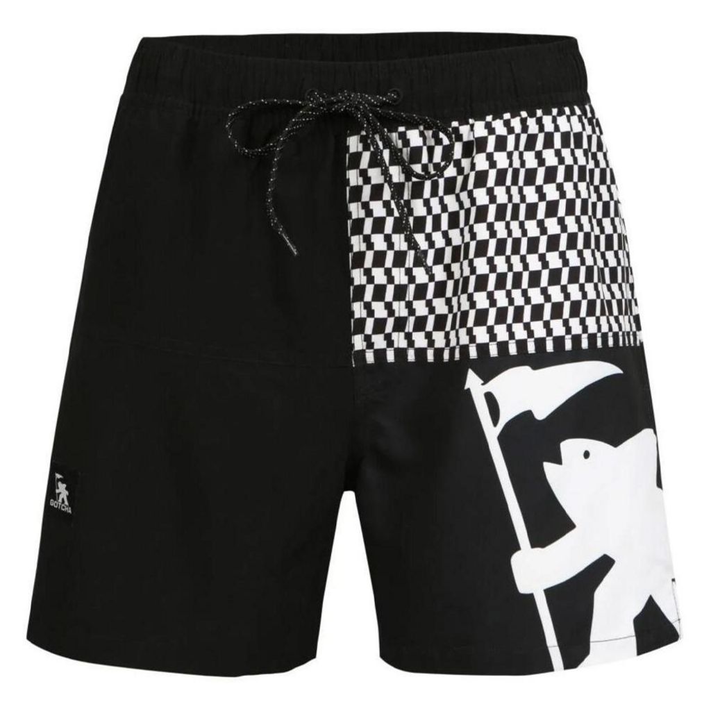 Optez pour le short de bain Homme de la marque Gotcha !- Couleur : Blanc/Noir- Coupe altique- Ceinture élastique- Cordons de serrage à la taille- Intérieur en filet- Composition : 100% polyester
