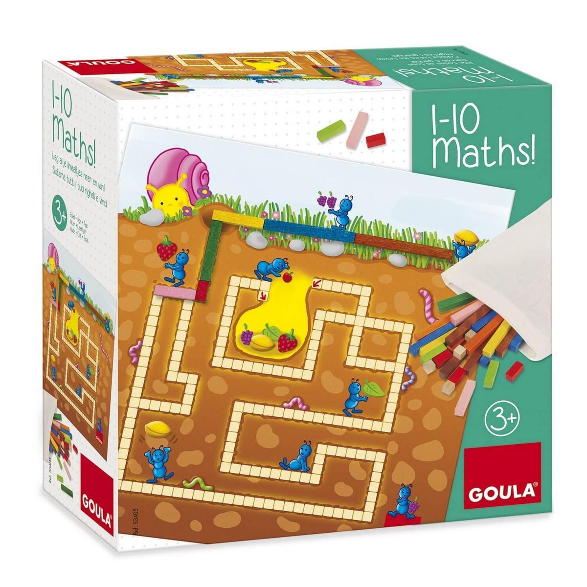 En savoir +Le jeu de mathématique 1-10 Maths de la marque Goula débarque sur Avenue des Jeux ! La marque Goula propose des jeux pour enfants amusants et divertissants mais avec toujours un fond éducatif afin d'accompagner vos enfants dans leur développement.Contenu de la boîte : - Les réglettes- Le plateau de jeu Jouable à partir de 3 ans. Age minimum : 3 ans