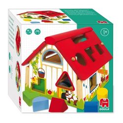 Une maison boîte a forme colorée et illustrée pour apprendre aux tout petits a reconnaitre les formes en les manipulant