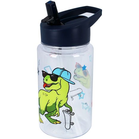 Gourde Dinosaure. Sans BPA, contenance de 450ml, avec paille rétractable. Pratique et résistante.