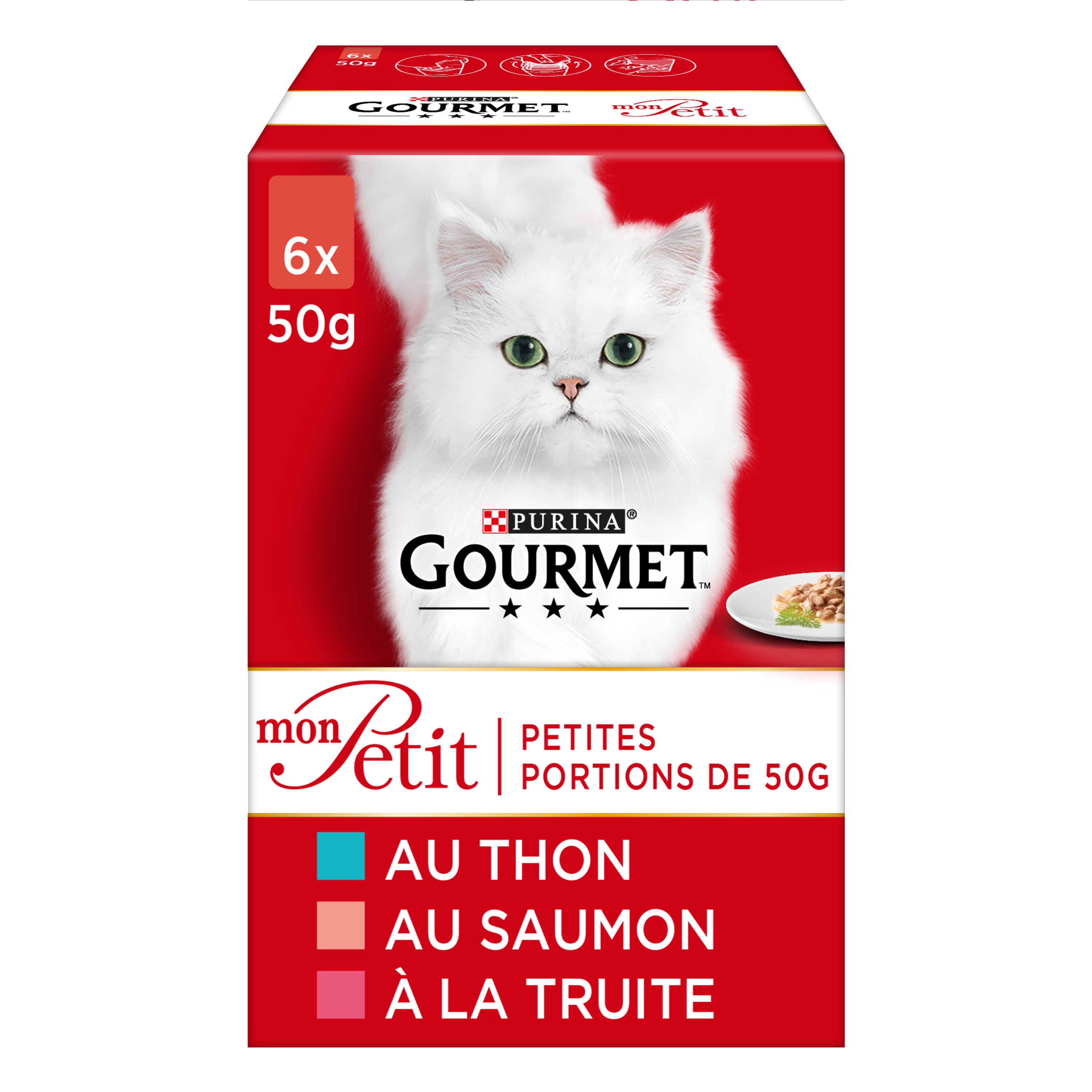 Vous savez que votre chat préfère manger de petites quantités, réparties en plusieurs repas tout au long de la journée. C’est la raison pour laquelle GOURMET a élaboré Mon Petit, une sélection de recettes exquises spécialement développées en petites portions pour le plaisir de votre chat à chaque repas. De délicats effilés au bœuf, au poulet, au saumon ou d’autres succulentes saveurs, servis dans une délicieuse sauce pour un excellent repas. GOURMET Mon Petit est proposé en petits sachets fraîcheur de 50g, pour que chaque repas de votre chat reste frais et pour qu’il puisse l’apprécier en une seule fois. C’est pour lui toujours plus de plaisir et de variété, sans aucun gaspillage pour vous. Toutes les recettes sont élaborées sans arômes artificiels ajoutés, sans conservateurs artificiels ajoutés et sans colorants artificiels ajoutés. GOURMET Mon Petit : une variété de délicieux repas à la juste quantité. Aliment complet pour chats adultes.
