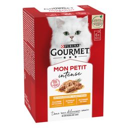 Pour les fins connaisseurs, tout est une question d'intensité des saveurs. GOURMET MON PETIT Intense. Une collection raffinée de délicieuses recettes qui célèbrent l'essence même du goût. Nous avons sélectionné des ingrédients de haute qualité et lentement cuit de délicats émincés dans une délicieuse sauce afin d'en extraire toute l'intensité de leurs saveurs. Votre chat fin connaisseur adorera nos petites portions fraîchement servies à chaque repas, pour une expérience gustative unique. Facile à ouvrir, facile à servir, sans gaspillage et dans un sachet conçu pour être recyclable. Toutes nos délicieuses recettes sont 100% complètes et équilibrées pour des chats adultes.
