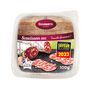 Viande de porc (origine France), sel, lactose (LAIT), dextrose, épices, ail, conservateur : E252, ferments. 174 g de viande utilisées pour 100 g de produit fini.
