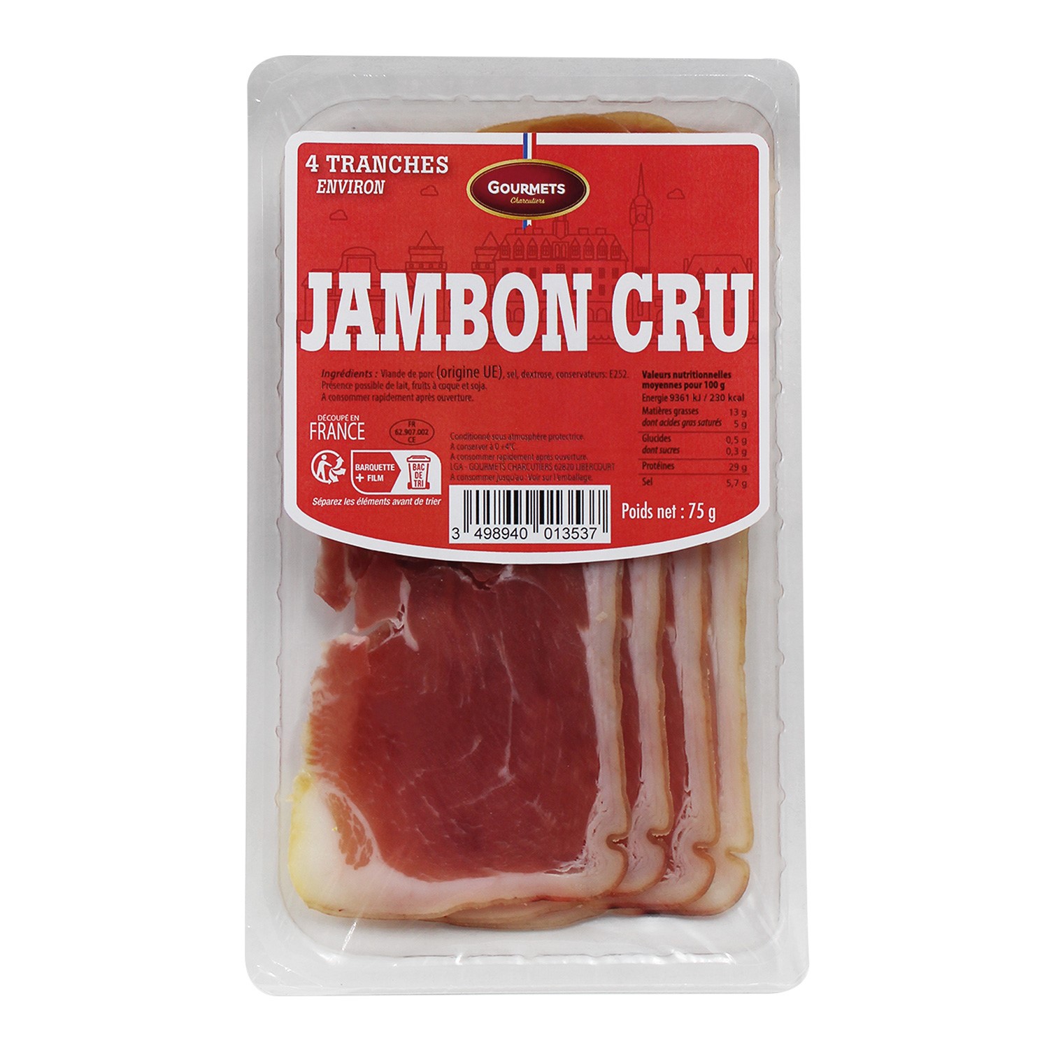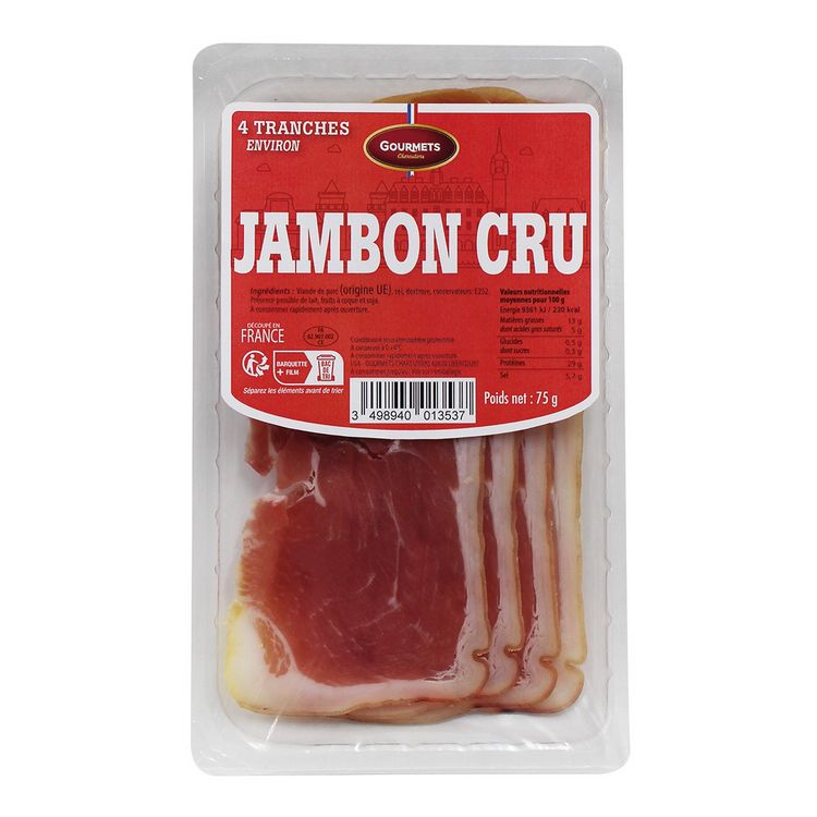 Délicieuses tranches de jambon cru affiné minimum 5 mois, pour vos plateaux charcuteries, vos sandwichs ...