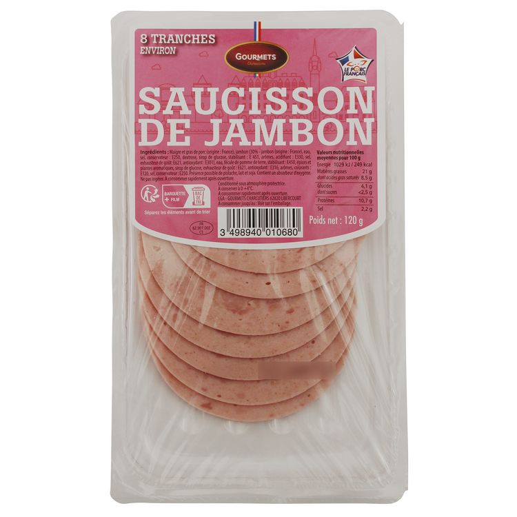 SAUCISSON DE JAMBON avec marquants de jambon en tranches Viande de Porc Français