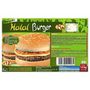 Préparation cuite de viande hachée de bœuf halal* et de protéines de soja (36%) : viande de bœuf halal* (23.2%)(origine UE et non UE (Royaume-Uni)), protéines de SOJA réhydratées (9%), chapelure de BLE (farine de BLE, sel), gras de bœuf (1,8%), sel, arôme naturel, sucre caramélisé, fibre de riz.