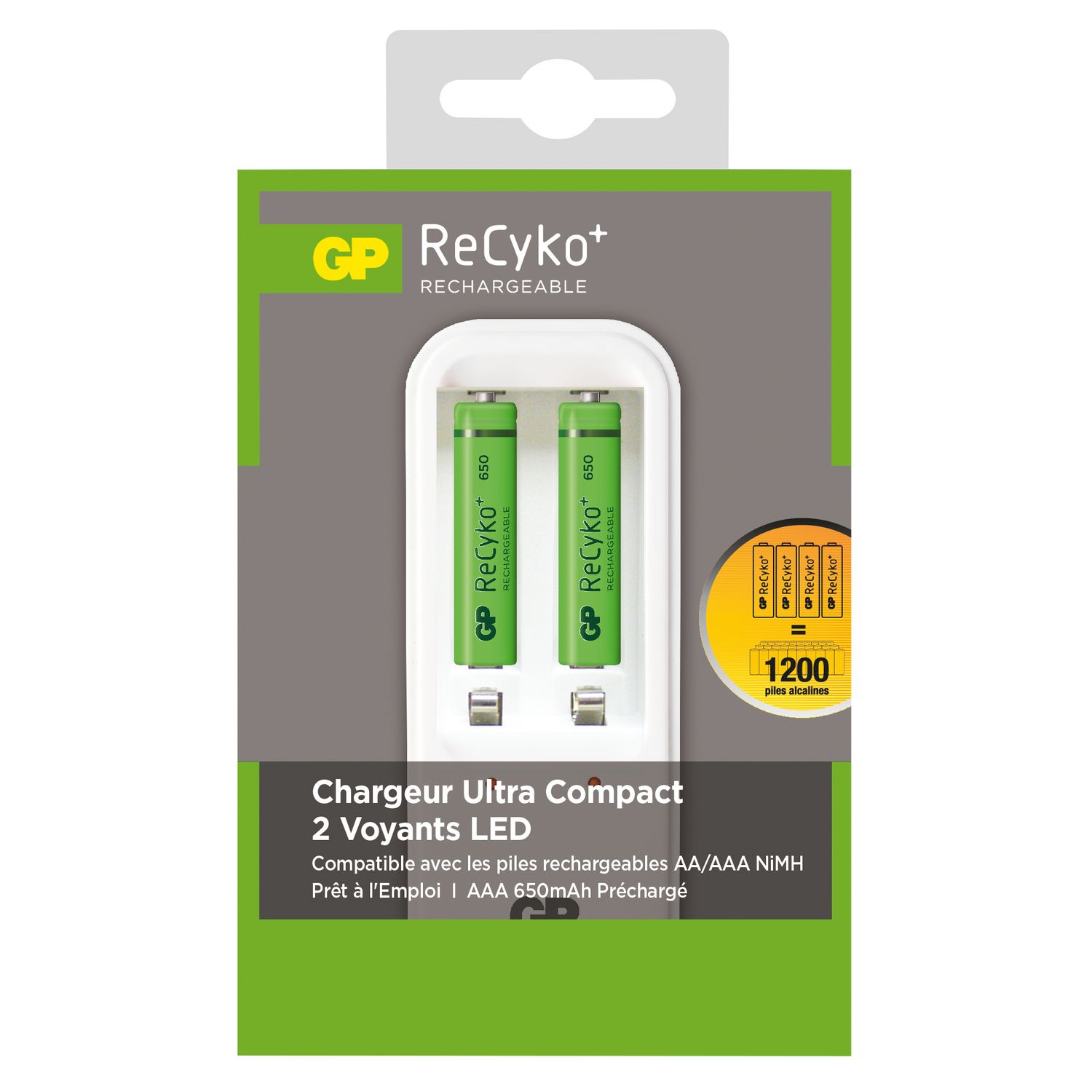 Recyko chargeur compact - lot de 2 piles AAA + chargeur