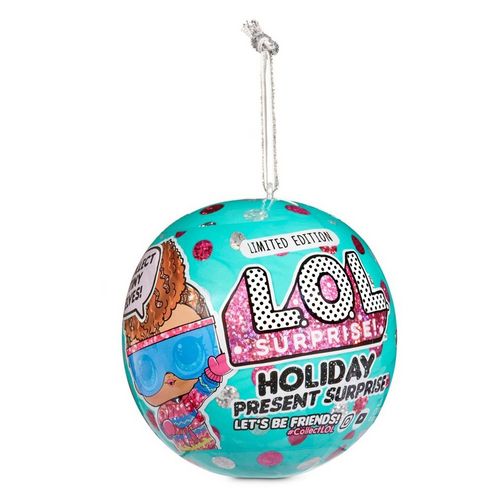 Découvre les nombreuses surprises que contient la boule L.O.L Surprise Holiday Present Surprise en édition limitée ! Il y a une poupée LOL, une figurine Tiny, un message secret, une bouteille, une tenue, des chaussures et un accessoire.