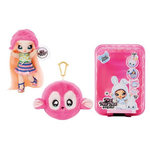1 peluche avec porte-clés contenant 1 poupée souple avec cheveux et tenues imprimées