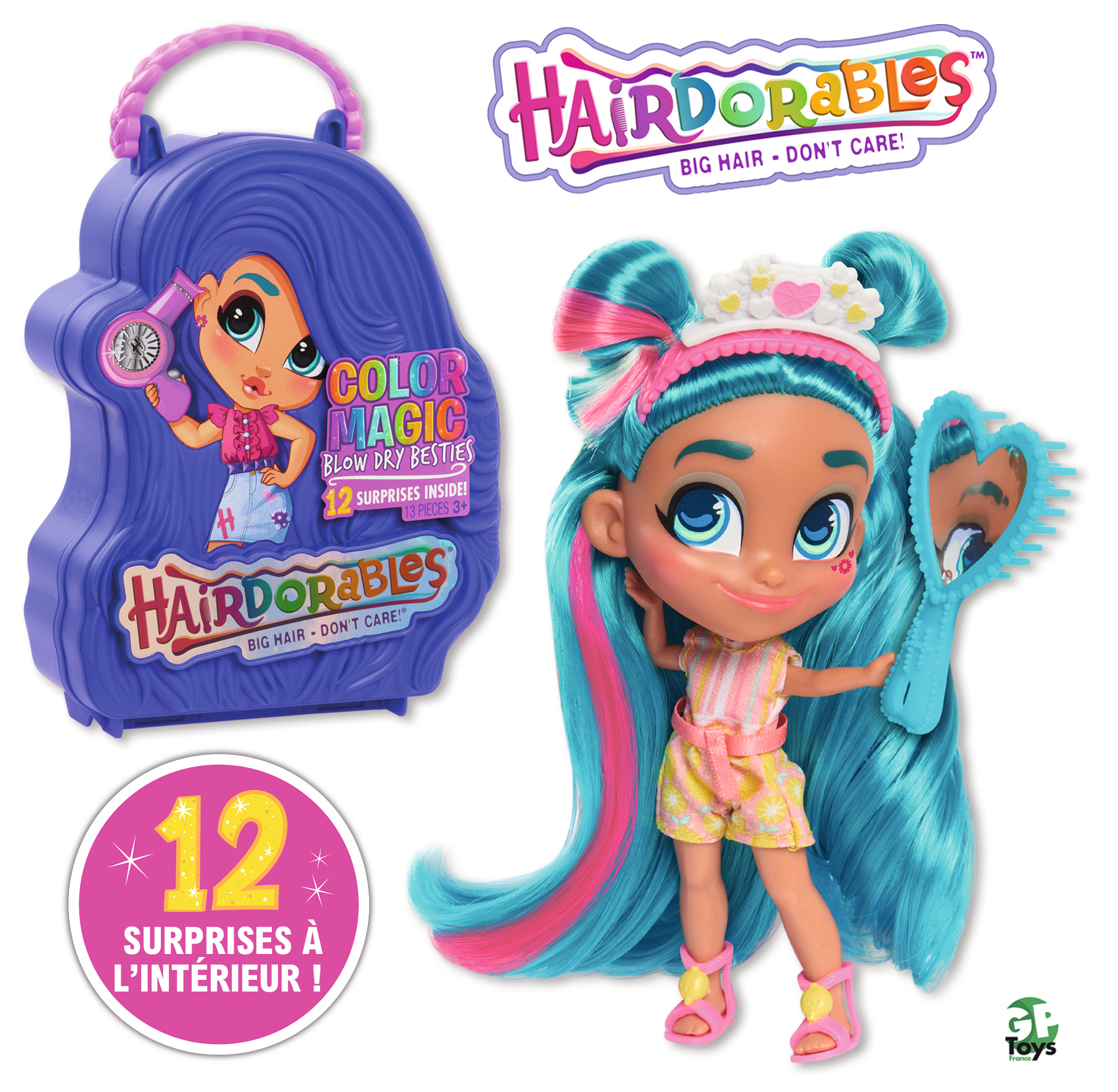 Découvre les Hairdorables, les poupées surprises. A l'intérieur de la boîte tu auras le droit à 12 surprises, génial non ? Tu pourras changer la couleur des cheveux et du maquillage grâce au sèche-cheveux. Fais-leur des coiffures de ouf ! Quelle poupée vas-tu découvrir ? Parmi 15 poupées, il y en a 2 rares et 1 ultra-rare.