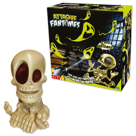 "Le jeu :Pour gagner, tu dois toucher un maximum de fantômes avec ton blaster !Plusieurs niveaux de jeu. Inclut : Crane projecteur, Blaster, (Piles non incluses)Pour 1 joueurDurée 2 minA partir de 3 ans"