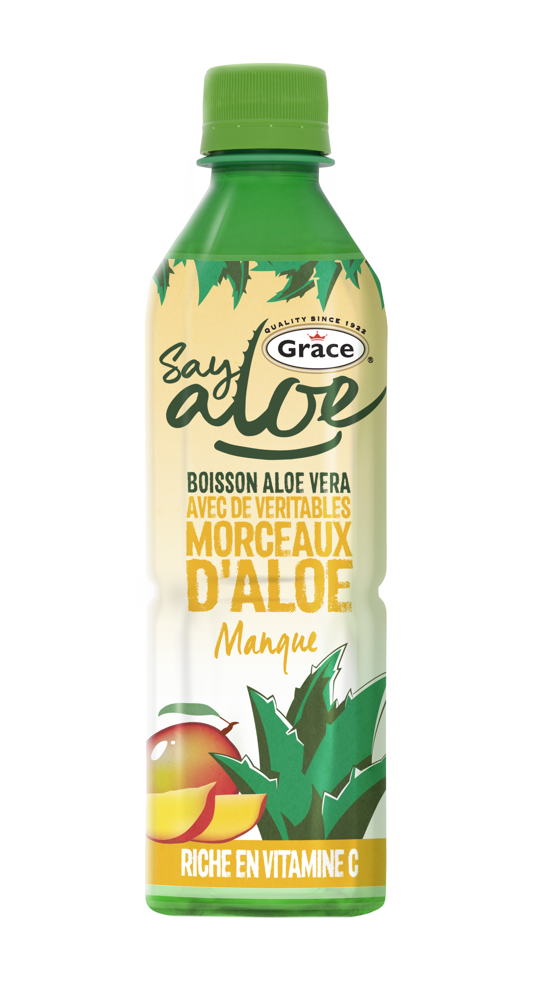 eau, aloe vera (20%), sucre de canne, jus de pomme, correcteur d'acidité : acide malique, arôme naturel de mangue, stabilisant : LACTATE DE CALCIUM, gomme de gellane, vitamine C, colorant : bêta-carotène, édulcorant : sucralose