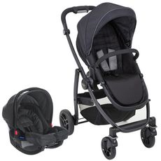 La poussette Evo avec assise réversible idéale pour les balades en famille at sa coque I-Size