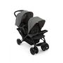 La poussette Stadium Duo peut utiliser deux sièges bébé et offre ainsi un confort de voyage à la famille. Le siège arrière surélevé convient aux nouveau-nés grâce à son dossier réglable jusqu'à la position couchée à plat, tandis que le siège avant à deux positions convient aux bébés de plus de six mois. Pour que vos enfants soient à l'aise en route, les deux sièges sont réglables en plusieurs positions et équipés de plateaux de jeu avec deux porte-boissons chacun, d'une capote coulissante et d'un repose-jambes. Dans le très grand panier de rangement, les parents disposent d'un grand espace facilement accessible.