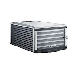 Le déshydrateur Graef DA 506 est conçu pour sécher efficacement les fruits, légumes, herbes, viandes et poissons. Il dispose d'un réglage de température variable de 30°C à 70°C permettant de préserver les nutriments et les saveurs des aliments. Son design compact s'intègre parfaitement dans toute cuisine. L'appareil est équipé de six grandes grilles réutilisables et lavables au lave-vaisselle ainsi que d'un ventilateur intégré assurant un séchage homogène. Fabriqué en plastique sans bisphénol A, il comprend également un tapis en silicone et un recueil de recettes pour accompagner vos préparations. Ce déshydrateur de 630 W fonctionne avec une tension de 230 V et une fréquence de 50 Hz, et dispose d'un minuteur pouvant aller jusqu'à 40 heures.