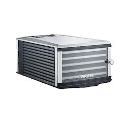 Le déshydrateur Graef DA 506 est conçu pour sécher efficacement les fruits, légumes, herbes, viandes et poissons. Il dispose d'un réglage de température variable de 30°C à 70°C permettant de préserver les nutriments et les saveurs des aliments. Son design compact s'intègre parfaitement dans toute cu