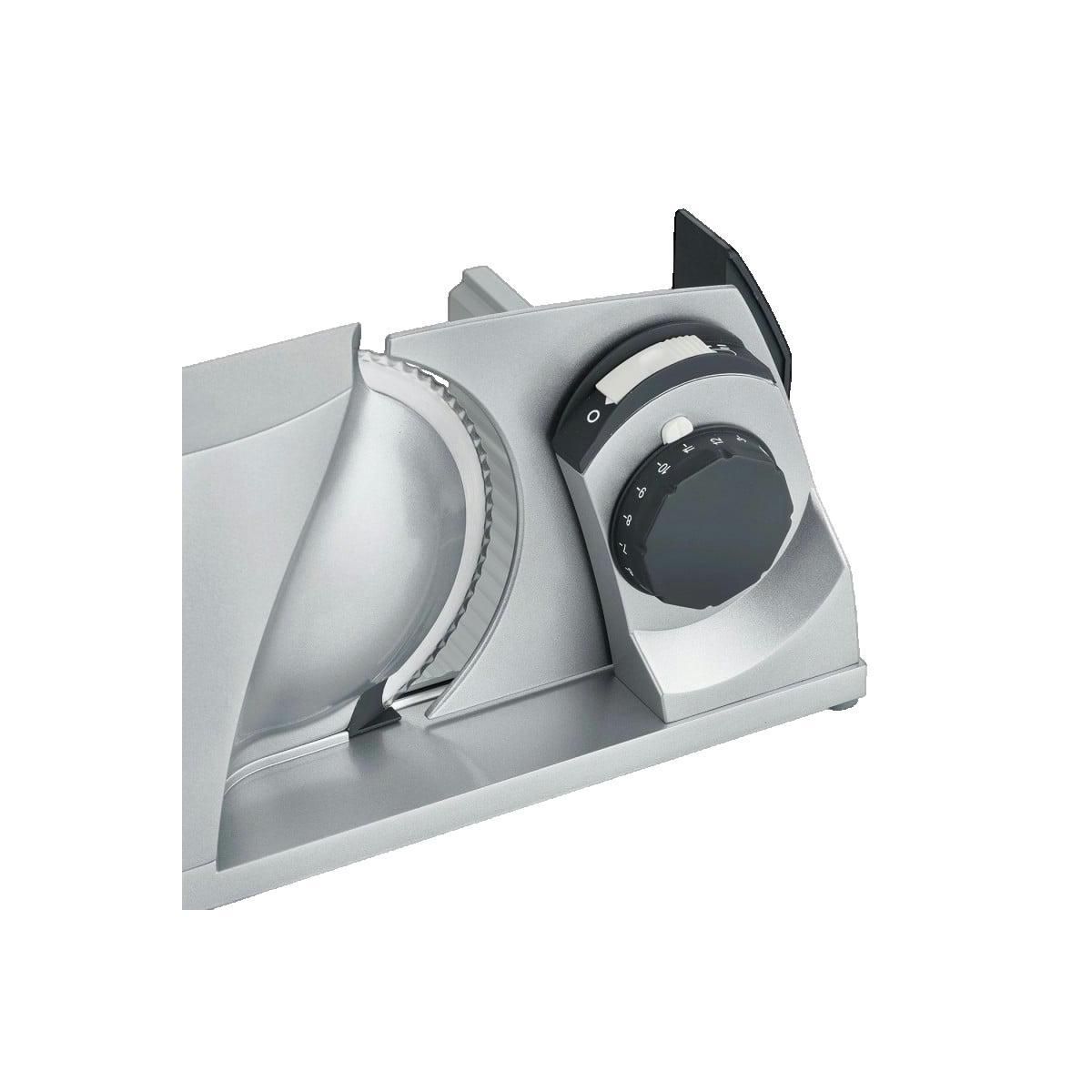 La trancheuse électrique Graef MYtiny est un appareil compact et pliable, idéal pour les petites cuisines et le camping. Elle dispose d'une puissance de 170 W et d'un couteau en acier inoxydable de 170 mm, permettant des coupes précises réglables de 0 à 15 mm. Fabriquée en métal de haute qualité, el